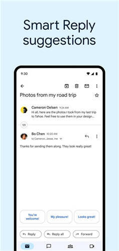2、强大搜索能力:依托谷歌搜索技术,用户能通过关键字、日期、发件人等条件,快速找到所需邮件。
