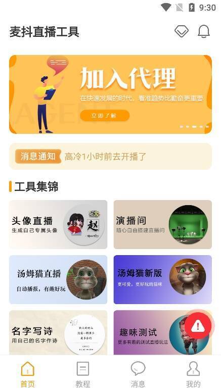 3. 在首页可全面了解直播工具。