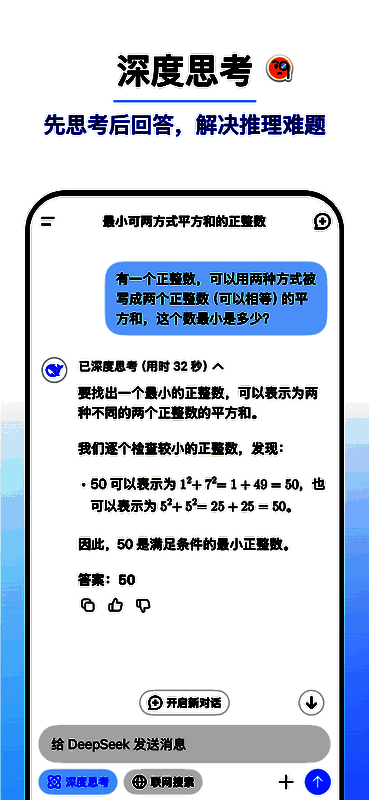 3、搭载深度思考功能,让AI先推理再回答,有效解决高阶问题。