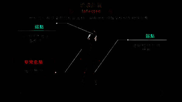 手枪:伤害高,但射击速度慢,无法连续射杀僵尸。不过换弹速度比冲锋枪快。适合射击远程单个僵尸,瞄准僵尸头部或上半身伤害更高。