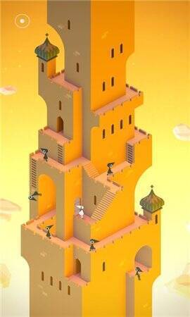 2、所有的塔和楼梯都暗藏神秘。轻轻滑动,分离的楼梯便会拼接在一起,连通所有通道,到达终点,这便是玩家的目标。
