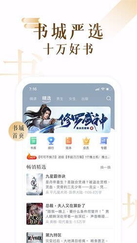 2. 拥有都市、浪漫、奇幻等大量畅销书,类别丰富。