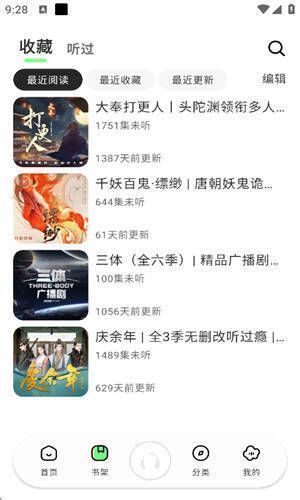 轻云听书免费最新版是一款出色的小说阅读软件,用户能更好地找到喜欢的小说资源,有需要的小伙伴快来免费下载体验吧!