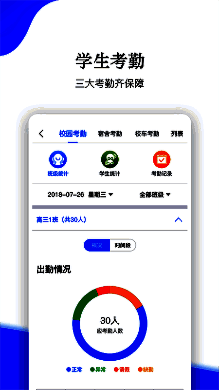 2、软件为用户提供多种实用功能,可通过它查询学生的各类考勤记录。