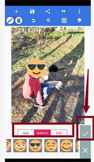 4、点击“帖纸”,选择想要加入的图,让图片更有趣;