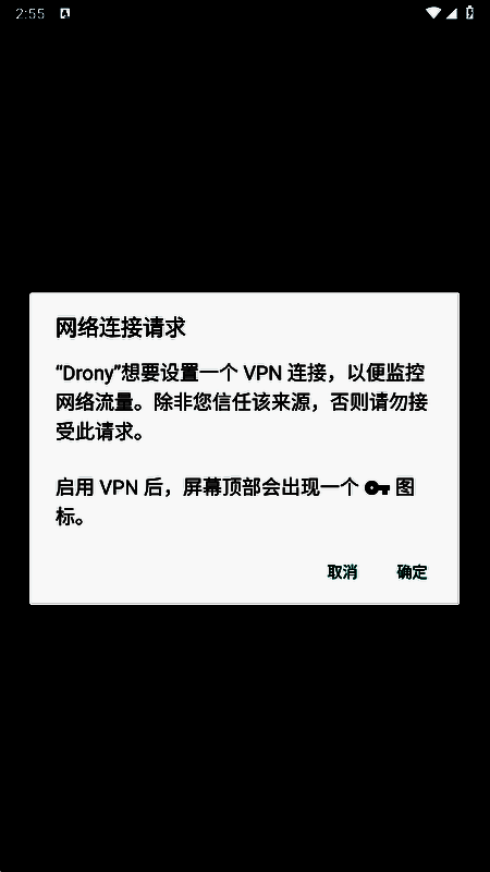 6、左滑到log标签页,点击底部的off按钮,启用Drony,同时确保Drony进程在后台不被关闭。