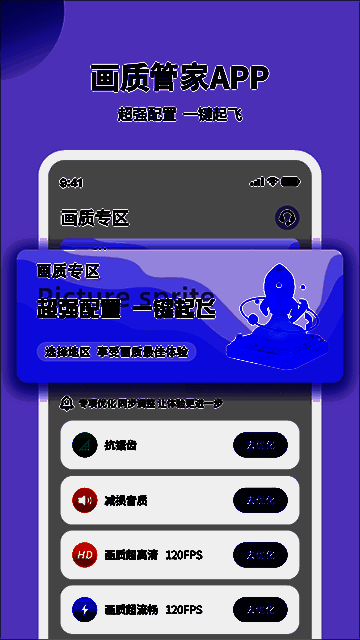1、一键优化超便捷:画质管家具备一键优化功能,只需轻轻一点,软件就能自动调整所有画质和帧率设置,省去繁琐的手动操作,大大提高效率。