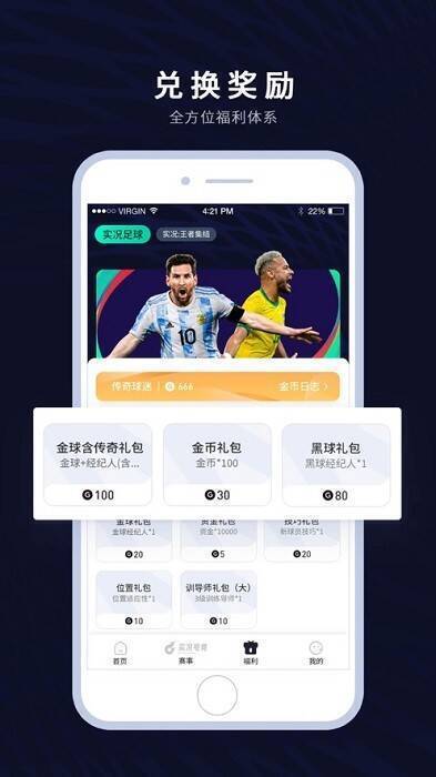 用户可用金币免费兑换游戏礼包,解锁更多好处,助力培养球员成为巨星。