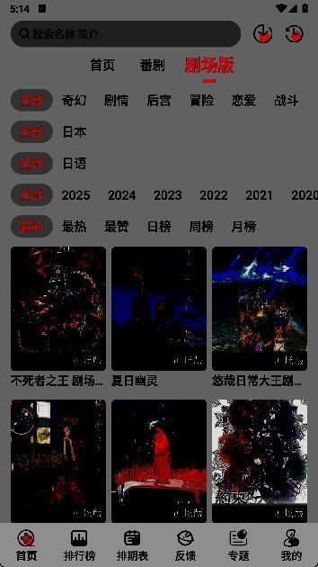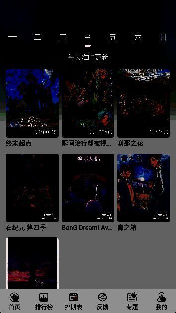 3、排期表页面主要呈现每天的动漫更新情况。