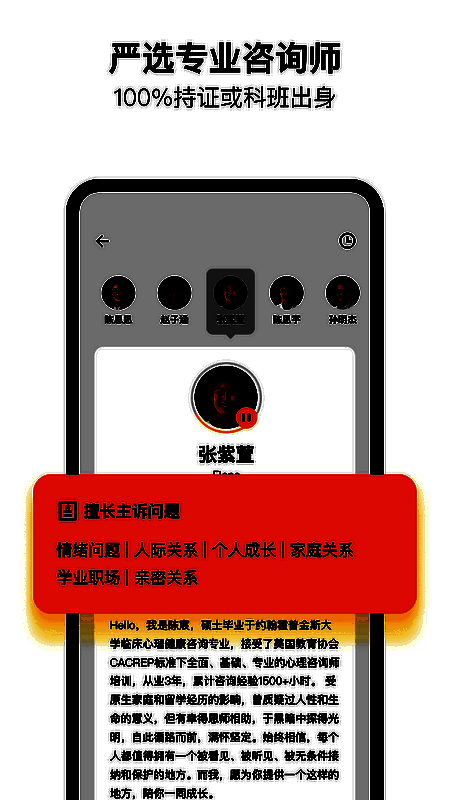 3、咨询期间,若用户觉得无法与咨询师建立信任,可自行更换咨询师。