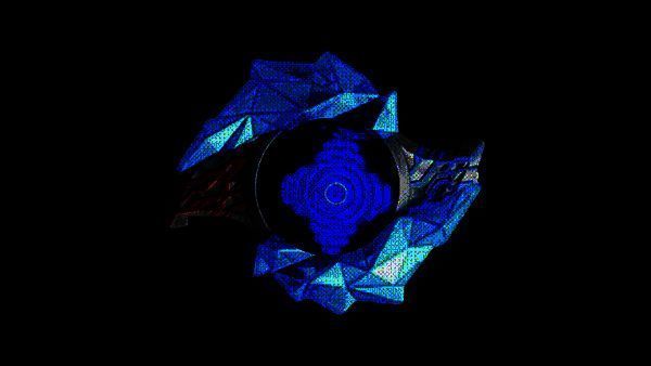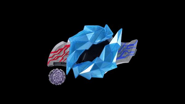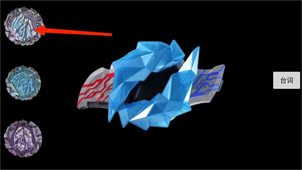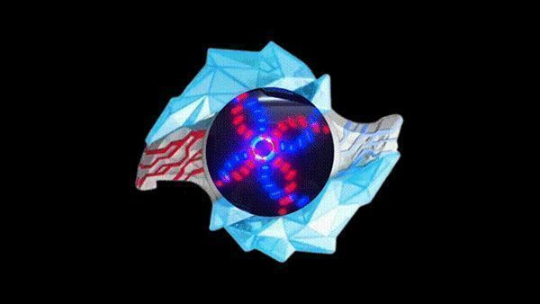 5、变身过程中,中间的水晶会展开露出显示屏,出现红色和蓝色圆圈旋转,不同的晶石特效各异。