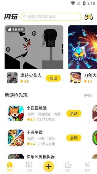 闪玩游戏盒免费版是一款实用的手机游戏盒,它拥有丰富的游戏资源,无论是单人游戏还是网络游戏,玩家都能轻松找到感兴趣的游戏。软件界面简洁,功能清晰,设有主页、类别、排名和我的等功能模块,玩家既可以按需搜索,也能按沙盒、竞赛、塔防、射击和角色扮演等类别挑选。其最大亮点是独特的免下载安装机制,找到游戏后可直接游玩,十分便捷。
