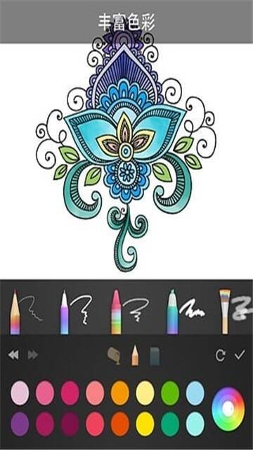 游戏提供大量不同难度的精美曼陀罗图案,适合不同层次玩家挑战。玩家能自由选色创作,还可通过调色板调配自定义颜色。完成不同图案能解锁新图案和颜色,增加趣味性与成就感。支持保存和分享功能,方便展示创作。