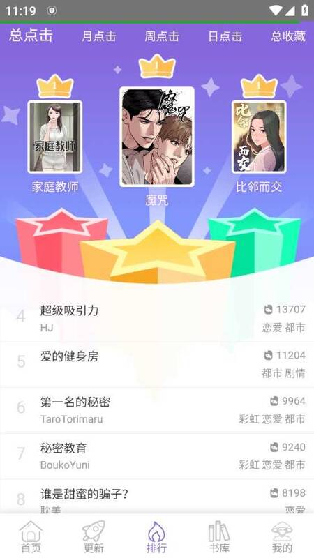 1、排名展示:提供漫画排名功能,展示热门漫画和作品,助用户快速了解热门动态并阅读。
