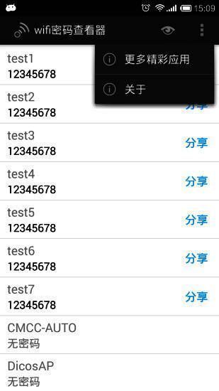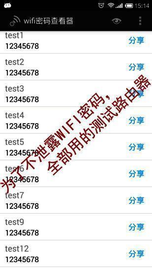 1. 密码显示:清晰展示WiFi网络名称、密码和连接状态,便于查看管理。