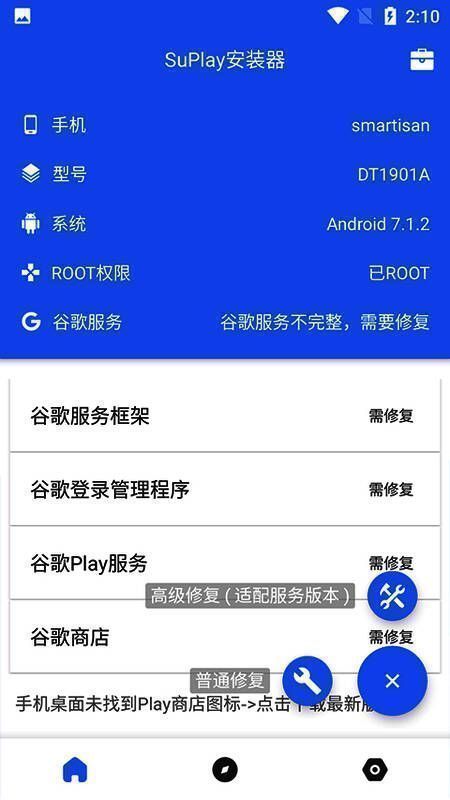 2. 两种模式助力修复谷歌服务,准确适配谷歌服务版本。
