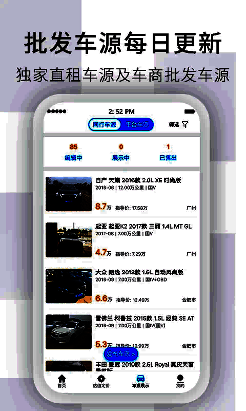 车e估商家版专为二手车商打造,为其提供便捷的评估工具。该应用集成了车源信息管理、在线评估、车辆采购等众多功能,助力车商更高效地开展交易与管理工作。用户能批量上传车辆图片,随时更新信息,还可借助贷款计算器、违章查询等小工具优化购车流程。它辅助车商完成车辆评估、管理、数据查询、采购、处置全流程,适用于线下交易场景,让汽车交易更简单。