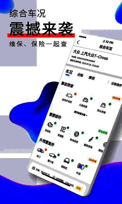 1. 可查看车辆历史保养状况,查询品牌覆盖全面,收车时能掌握细节,避免吃亏。