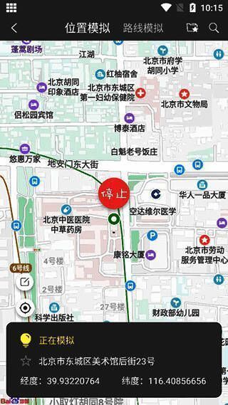 4、模拟位置:点击地图上任意位置即可模拟要到达的位置。