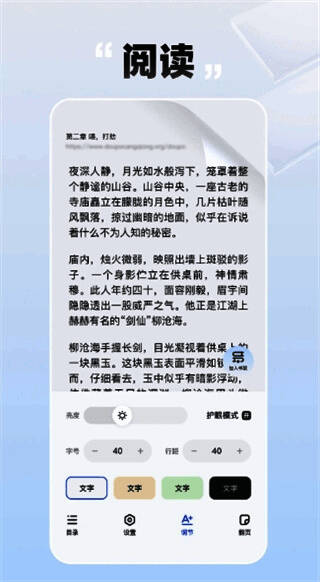 支持调整字体大小、背景色、亮度等阅读参数,契合不同用户阅读需求。