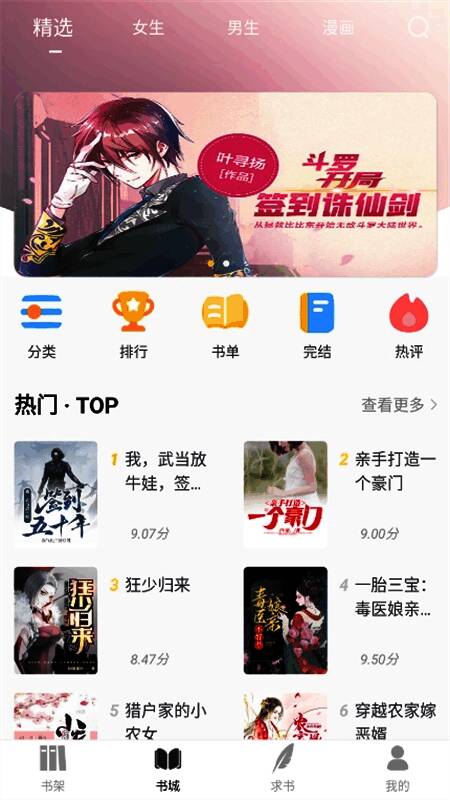 3. 书架功能:可在书架添加心仪书籍,随时开启阅读。