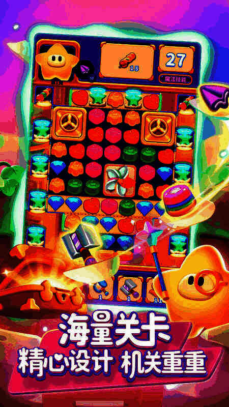 这款软件有经典三消玩法,玩家通过各关卡赢胜利和奖励,挑战难度渐增,带来丰富消除体验与乐趣,能完成更多关卡,轻松成为消除大师。