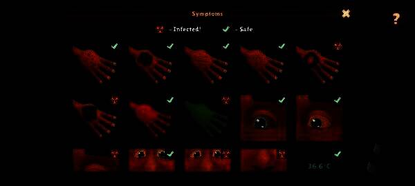 独特的后启示录背景搭配深色游戏图形,营造压抑氛围。多种检测方法助玩家捕捉感染者,保障他人安全。玩家的每个决定都会影响故事走向与结局。玩家需观察受试者身体,判断是否感染。