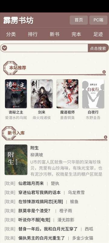 霹雳书坊app正版是一款操作便捷的免费追书阅读软件。它具备丰富的小说书单和多样主题,用户能自由查阅热门、经典、完本等各类小说资源,免费畅享心仪小说及其最新内容,享受优质追书体验。用户还可轻松查看各类小说榜单,随时随地在线阅读。全新设计的阅读界面,能让用户随时浏览精品小说,自由营造便利的阅读环境,方便收藏喜爱的小说。