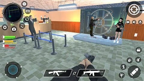 当小偷出现时,玩家可操控其旁边的被盗物品,开启盗窃任务。若警察前来逮捕,玩家能与警察展开战斗,及时拿起武器射击。玩家还能在游戏中随时抢夺大量汽车等资源,游戏中充满暴力元素。建议玩家穿上防弹衣,关键时刻能保命,因为歹徒十分凶狠。