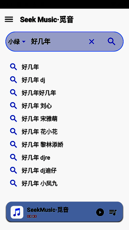 1、打开觅音软件,在搜索框可按歌曲名或歌手名搜索。