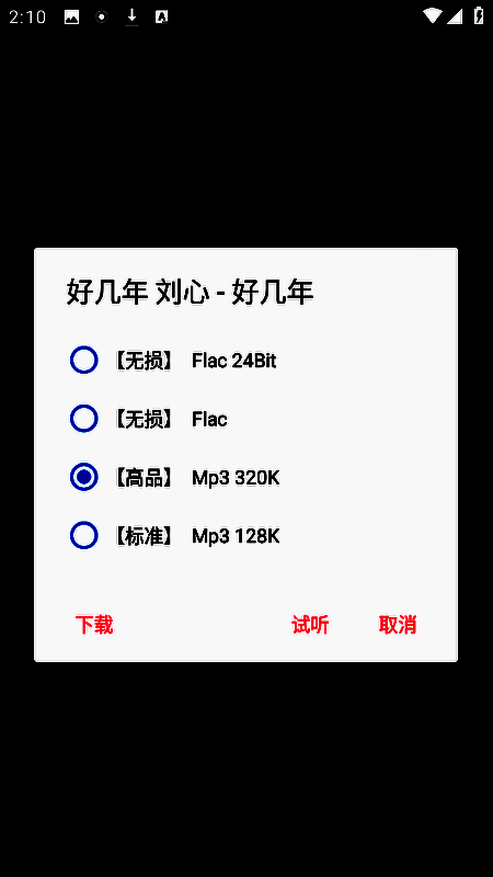 点击下载按钮后有试听功能,可点击试听。