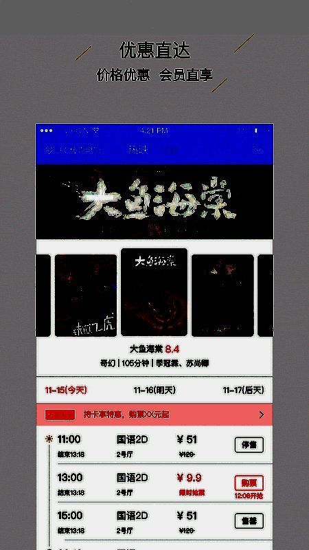覆盖各大院线,近6000家影院,在线选座购票,无需排队就能选到好座位;