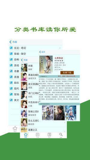1、提供正版全本小说,有玄幻、穿越、总裁、言情、宫斗、官场、励志、恐怖、名著等分类全本小说排行榜;2、内置书库,可删除旧书、下载新书;3、具备全屏阅读、书签收藏、智能记忆上次阅读位置、白天/夜间/养眼模式等贴心设计;4、能完美适应所有版本的iphone/ipod touch/ipad设备;5、专注精品图书阅读服务,品质值得信赖。