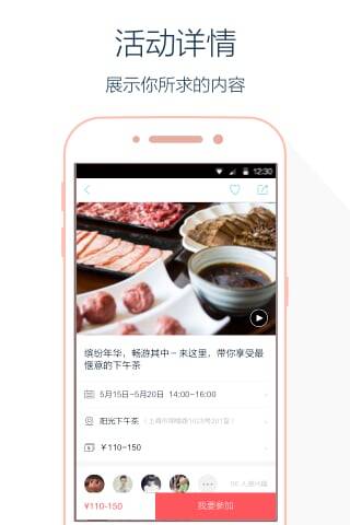 1、打开软件会第一时间启动定位功能,距离你最近的热门活动会不断呈现,助你开启精彩的周末之旅。