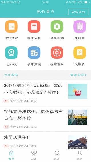 4、家长课堂无缝对接:家长通过手机客户端可随时关注孩子学习情况,实现家校有效沟通。