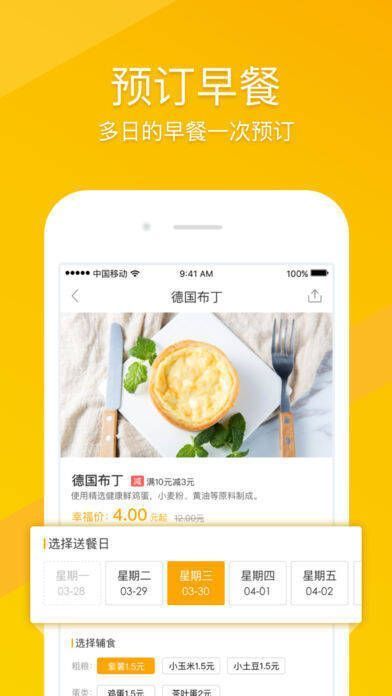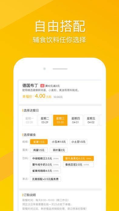 3、【轻松预订】使用 APP 可预订当周任意工作日的早餐,每天 23 点前都能预订次日早餐,轻松解决早餐难题;