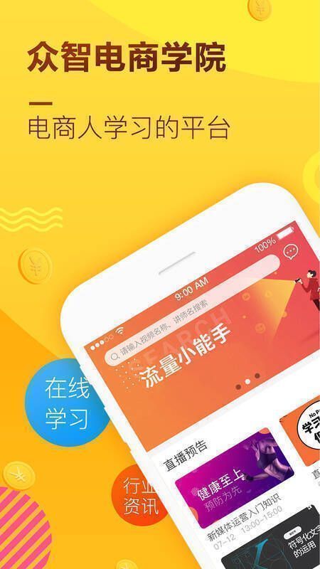 众智电商学院 app 是电商人士学习交流的教育平台。直播预告让你提前了解内容是否符合需求,专家讲解让你收获颇丰,还能随时随地在线学习。