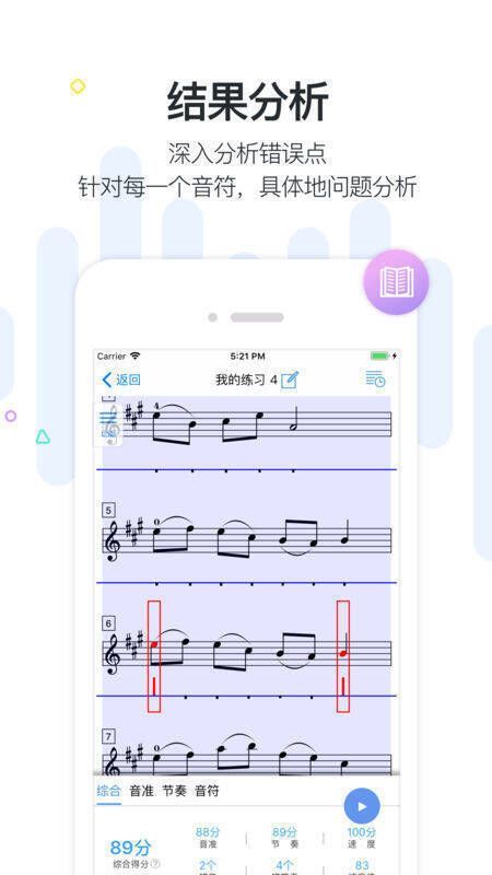 4、多音支持:具备双音多音的跟随、指错功能,能精准指出每个音符的偏差。