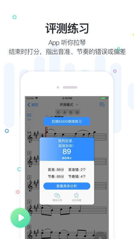 1、智能启动:无需手动操作点击,依次拉响小提琴的E、A、D、G四根空弦,即可开启练琴。