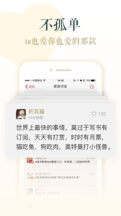 4、【社区互动】高人气互动社区,知名作家定期互动,小说大触倾心吐槽,可快速求书、自由评论。
