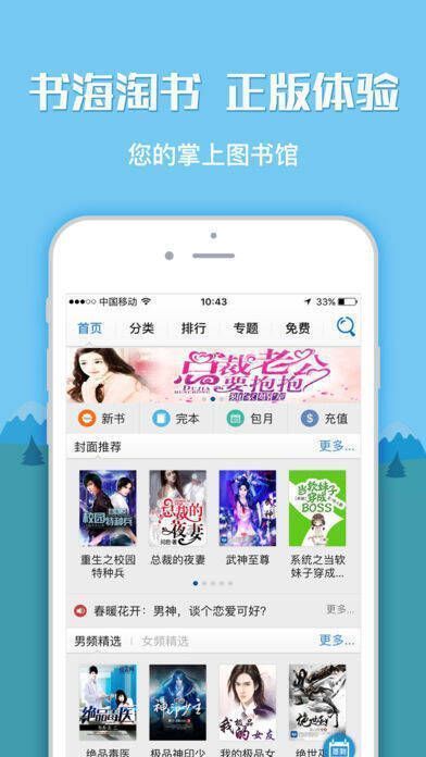 1、涵盖都市言情、霸道总裁等多种类型超人气网络小说;2、各类榜单分类精细,有男频女频推荐;3、特色专题和超多活动,满足当下阅读需求。