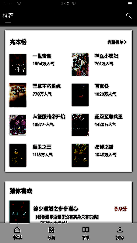 1. 它懂你的喜好,根据你搜索查看过的小说智能推荐对应热门小说,精彩不容错过。