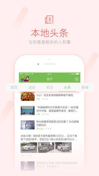 2. 多元头条阅读:除本地新闻,还有精心聚合的精彩头条、微信段子等。