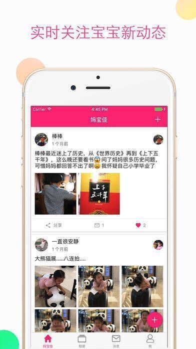 妈妈们见证宝宝成长极具成就感!妈宝佳能记录宝宝成长点滴,每一处都是美好回忆与幸福,可与家人朋友分享幸福时刻,宝宝的趣事和成长都记录其中。