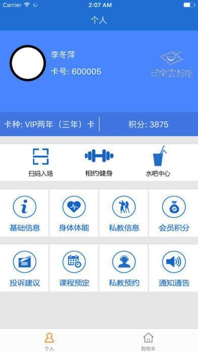 该APP客户端主要面向健身会所会员,功能与PC端对接互通。会员通过APP能随时了解自身的体适能、个人信息以及预约的课程和教练,便于进行自我健身管理。