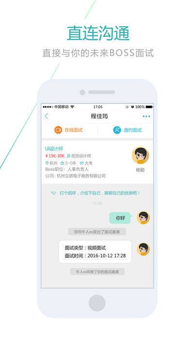 【语音简历】说出独特的自己;【直连沟通】与Boss畅聊入职;【数据驱动】大数据懂你;【智能匹配】快速锁定合适高薪岗位。