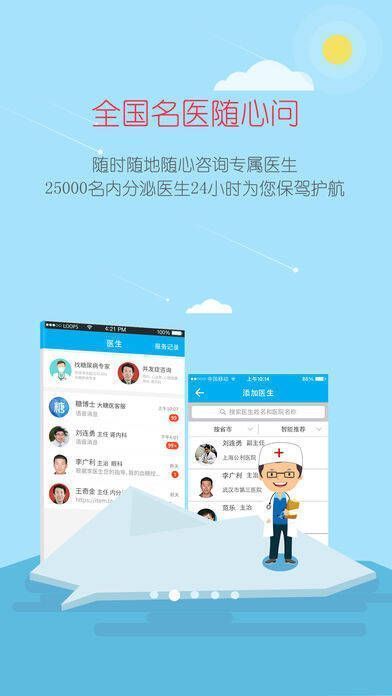 刚被诊断出糖尿病,心中充满疑问、担忧和焦虑?去医院排队门诊,既费时间又费金钱还费力?在院外遇到问题却无处询问?大糖医整合了全国各地优秀的糖尿病医生资源,让您轻松找到专属名医,随时随地快速解决问题。通过大糖医,您可以免费和专属医生进行文字、图片和语音交流,也能通过电话咨询获取医生建议。