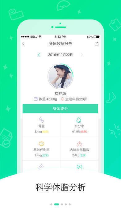 - 智能体脂测量,指标精准展现:借助智能硬件与 APP 结合的形式,精准测量 12 项身体指标,并清晰呈现,方便专业管理。