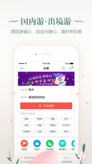 同程旅游移动客户端可预订景点门票、酒店、机票、火车票、出境跟团、出境自由行、邮轮、汽车票等旅游产品,同时提供用车、团购、攻略等全方位旅游服务。支持在线预订国内11万余家酒店和客栈、国内所有航线、国际大部分主流航线及国内所有铁路线路,还提供国内30余城市在线打车、50余城市机场接送机服务。