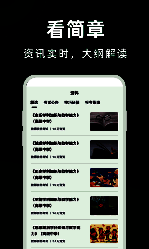 1、资讯信息实时更新,用户可随时查看简章数据,享受大纲解读服务。